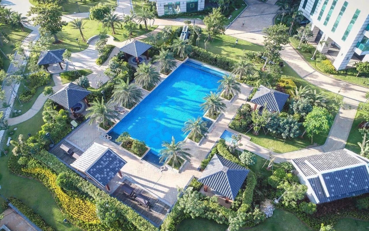 梦享•龙腾湾项目占地100亩,总建筑面积22万㎡。由7栋30层高层公寓组成,“双翼雁行式”布局,使每套房子达到无遮挡、户户观海的景观效果,可以说是没有楼间距的房子。整个项目采取了迈阿密现代简约风格,外墙采用钢化玻璃和LOW-E玻璃幕墙结构,具备了非常强的现代感和采光效果。整个项目离海滩约300米,步行10分钟即可到达沙滩浴场。同时,项目还为业主配备了1个标准泳池了4个温泉泡池,可以说全方位满足了业主的度假养生需求。