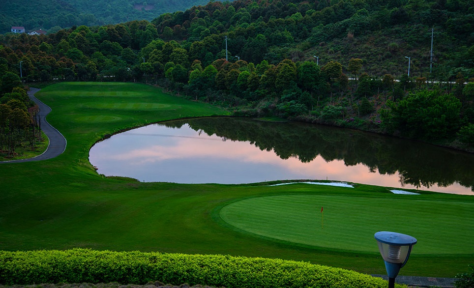 球场依势而建,以巧夺天工的天然奇石作为球道标志,地形的落差、果岭的变幻、山水的阻隔,为挥杆者设置重重障碍,形态各异的球道,跌宕起伏的球场地形,精心设计的陷阱,即使是技术一流的球友,也不敢小觑。球道另设有36打位练习场,扇型打位,南北朝向的设计,合理的避免了阳光的直射,草坪的平面呈自然上升走势,球手能够清晰的看到球的落点,为高球初学者以及一般选手提供尽情演练的舞台。