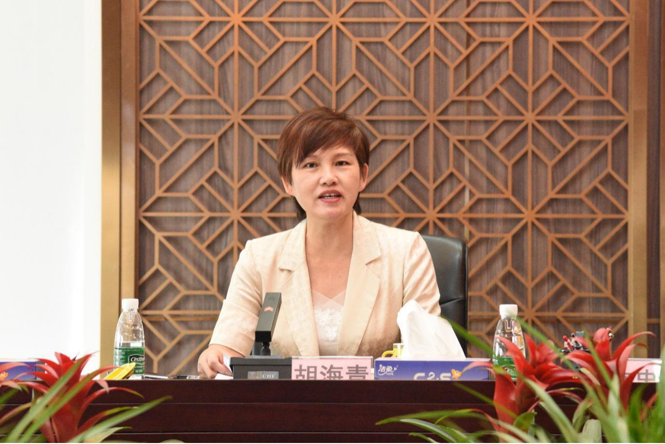 上图为陈惠霞经理汇报深圳地产集团上半年工作情况及下半年的工作计划
